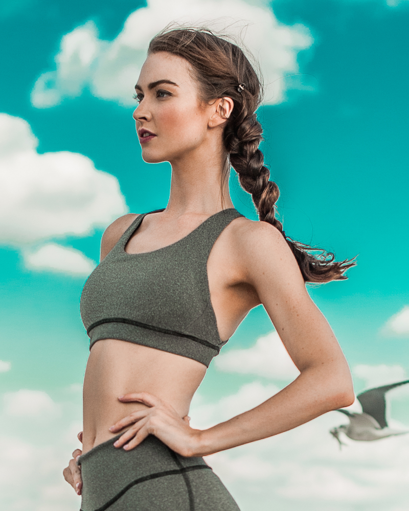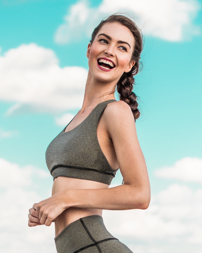 A streamlined, scoop silhouette and wide chest band for maximum support.